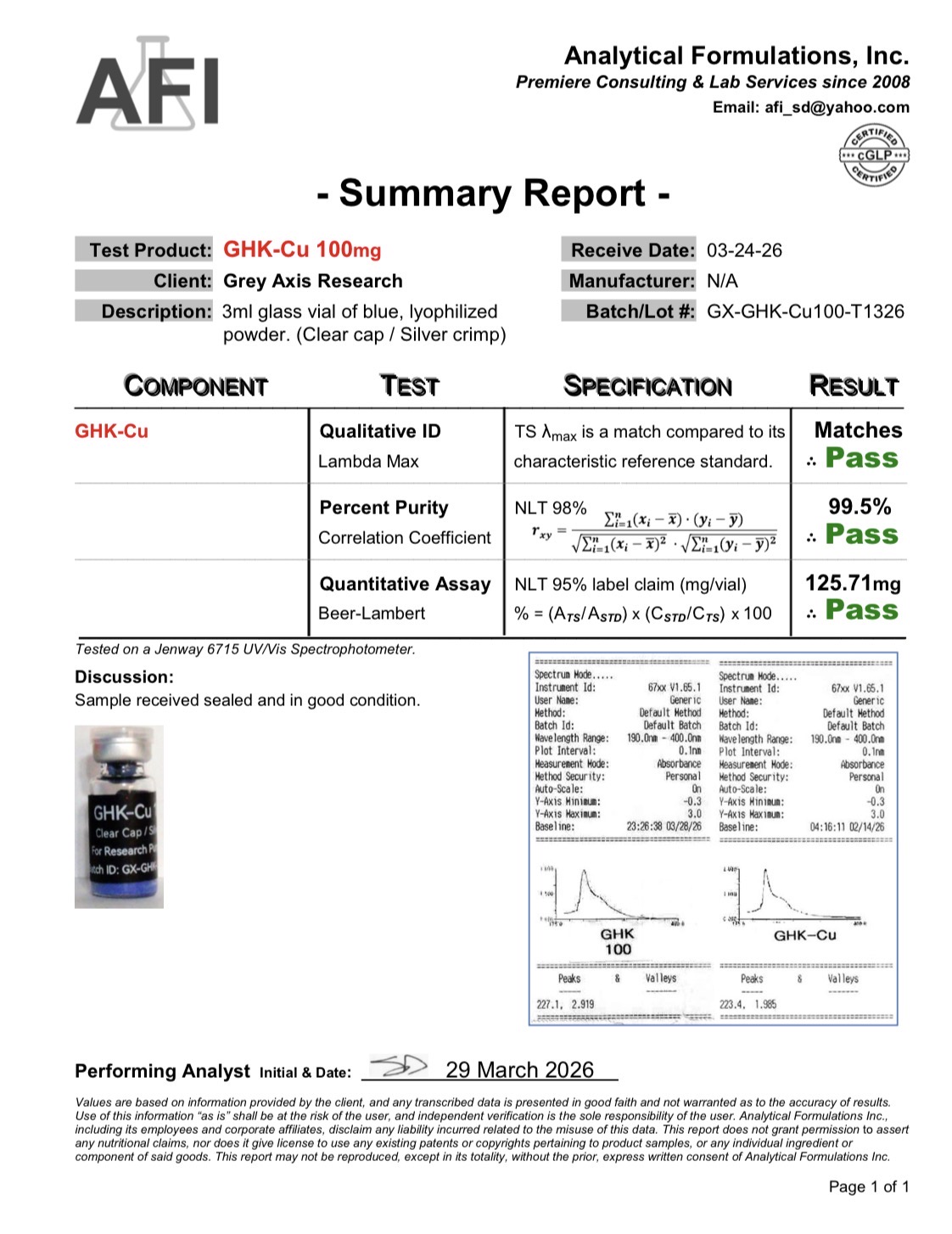 Grey Axis Research, LLC does not provide guidance regarding reconstitution, handling, or laboratory procedures. All products are offered strictly for research use only in non-clinical settings and are not intended for human or animal use. These products have not undergone evaluation by the U.S. Food and Drug Administration.